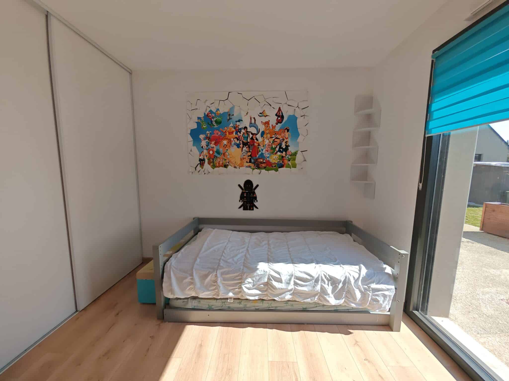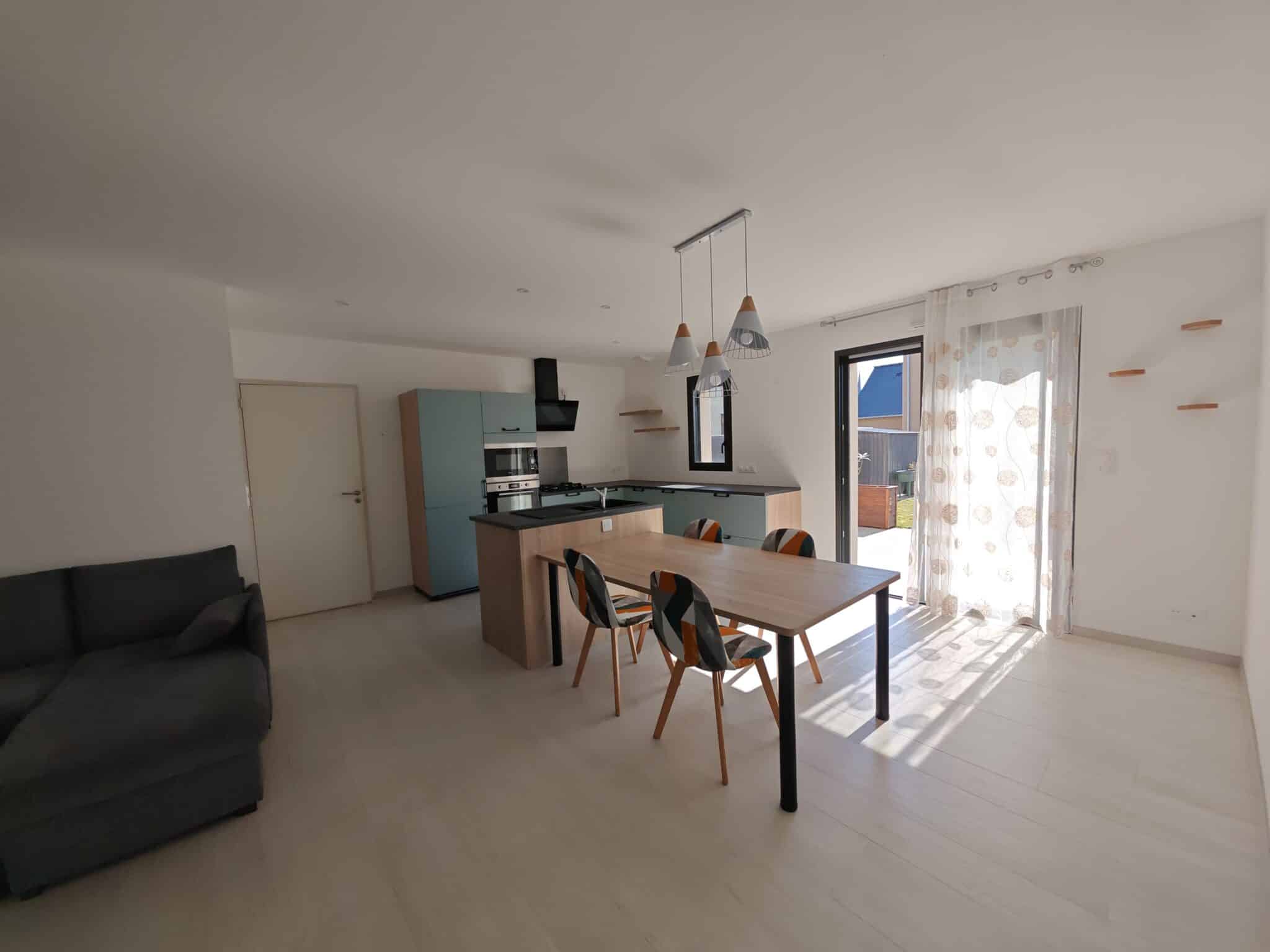 Maison de 2023 mitoyenne d’un côté de 81 mètres carré disposant d’un séjour de 35 mètres carré ouvert sur une cuisine aménagée et équipée, dans sa continuité un bureau. Le dégagement dessert 3 chambres dont une suite parentale, un WC indépendant et une salle de bain.